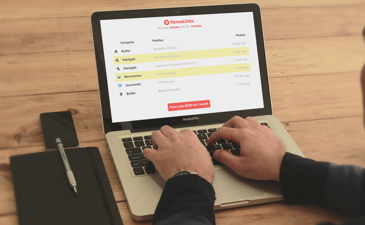 NomadJobs is job board for remote workers and digital nomads. It features only startups that work 100% distributed like Buffer, Zapier, Sqwiggle and Automattic. Try it here