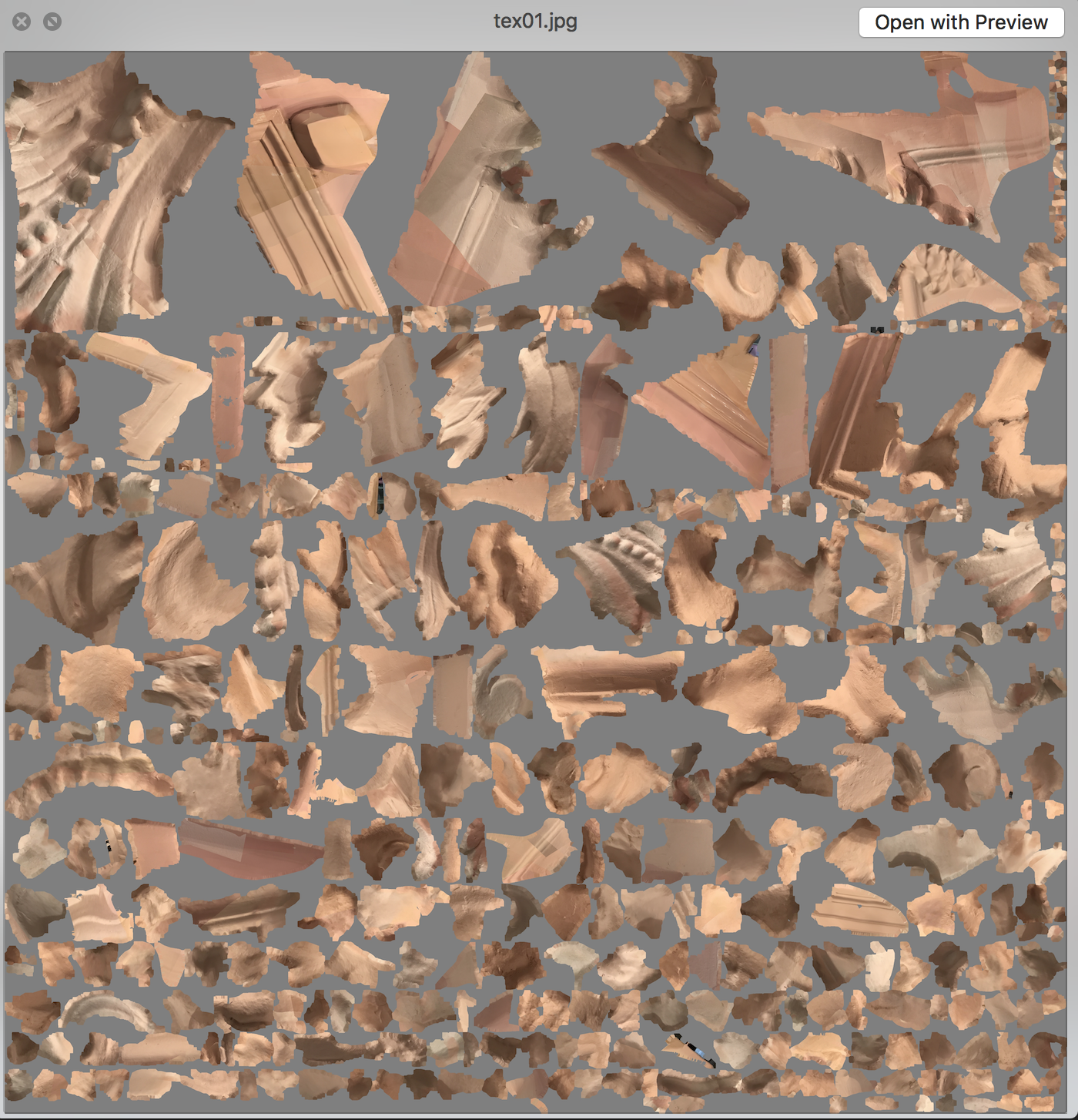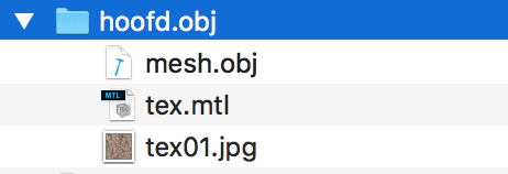 .. a material file .MTL and a texture file as a .JPG that’s simply a raw image of the textures it projects on your 3d object.