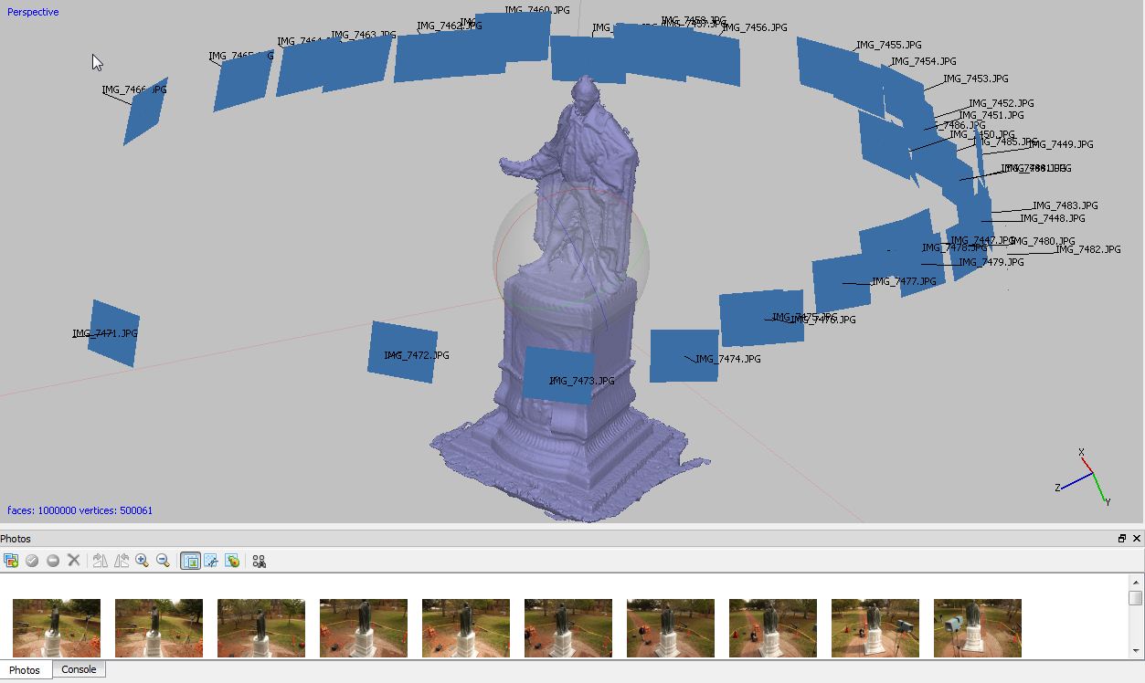The idea behind photogrammetry is that you take lots of photos (50 to 1,000 to even more) from different angles of an object, left, right, up, down, front, behind and software then stitches together lots of photos (from 50 to 1,000).