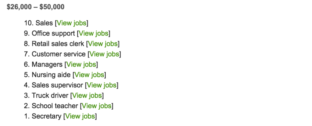 So let’s get back to those middle class jobs. They weren’t coming back. So who is the middle class really? This is the most popular middle class jobs: