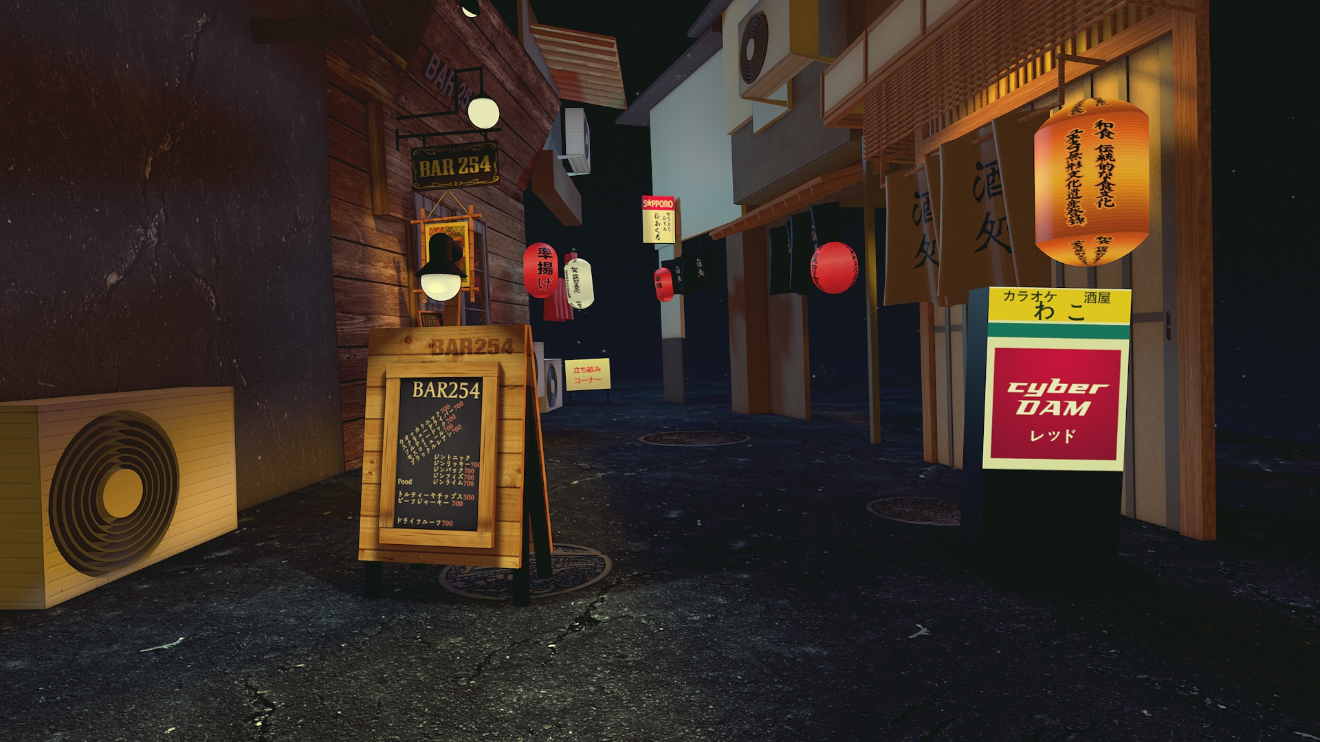 The main area of interest of this scene is clearly the bar on the left side called Bar 254. It’s a whisky bar (I googled it) and it’s literally considered a “tiny bar”. These are small Japanese drinking establishments literally the size of a tiny room or closet. You can just fit in a barkeeper, and maybe 4 or 5 guests. But it’s cosy. And impossible to keep a conversation to yourself. So it usually becomes one big group shouting match inside a tiny bar. Haha.