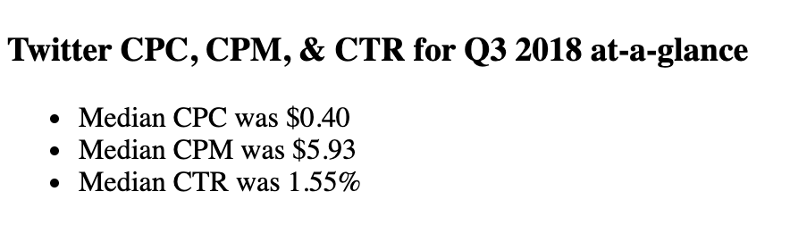 I could only find Q3 2018 data when Twitter's CPM for ads was $5.93: