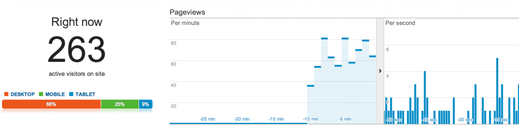 - 250+ simultaneous readers at its first peak @ (3 PM SFO, 11 PM LDN, T+3h)