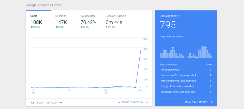 That worked. We knew it worked because suddenly in Google Analytics we saw the real-time users rise: