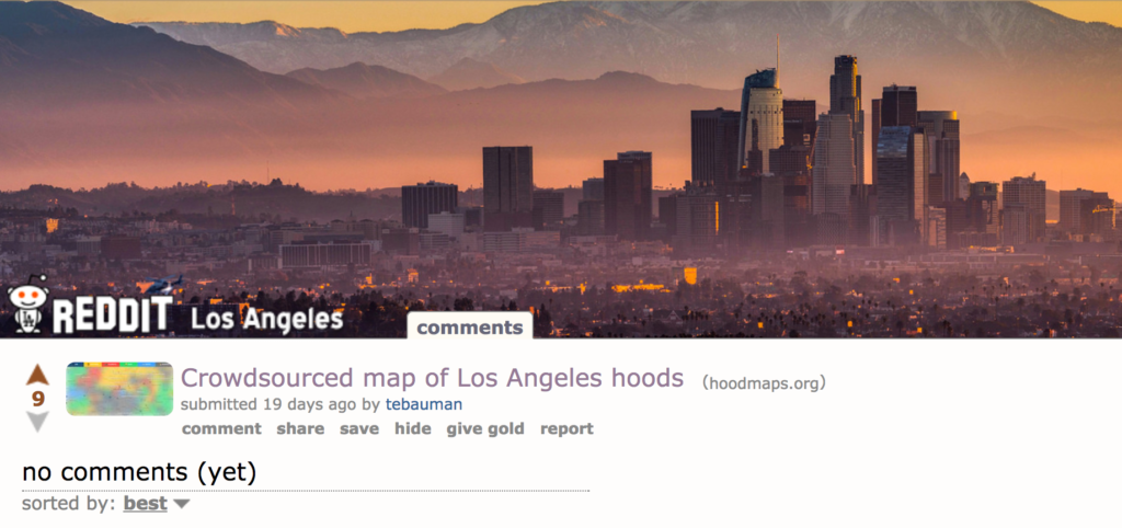 Obviously, the goal was to get to the frontpage. But I never expected that would actually happen. I had it happen ONCE before submitting Nomad List to /r/dataisbeautiful: 2 years ago on /r/dataisbeautiful. The comments were quite critical but it reached the frontpage. With previous success, and Hoodmaps also being a relevant site for the subrreddit /r/dataisbeautiful since it's also data based (and beautiful), I submitted it. I needed to be SPOT ON with the title here or it'd die.