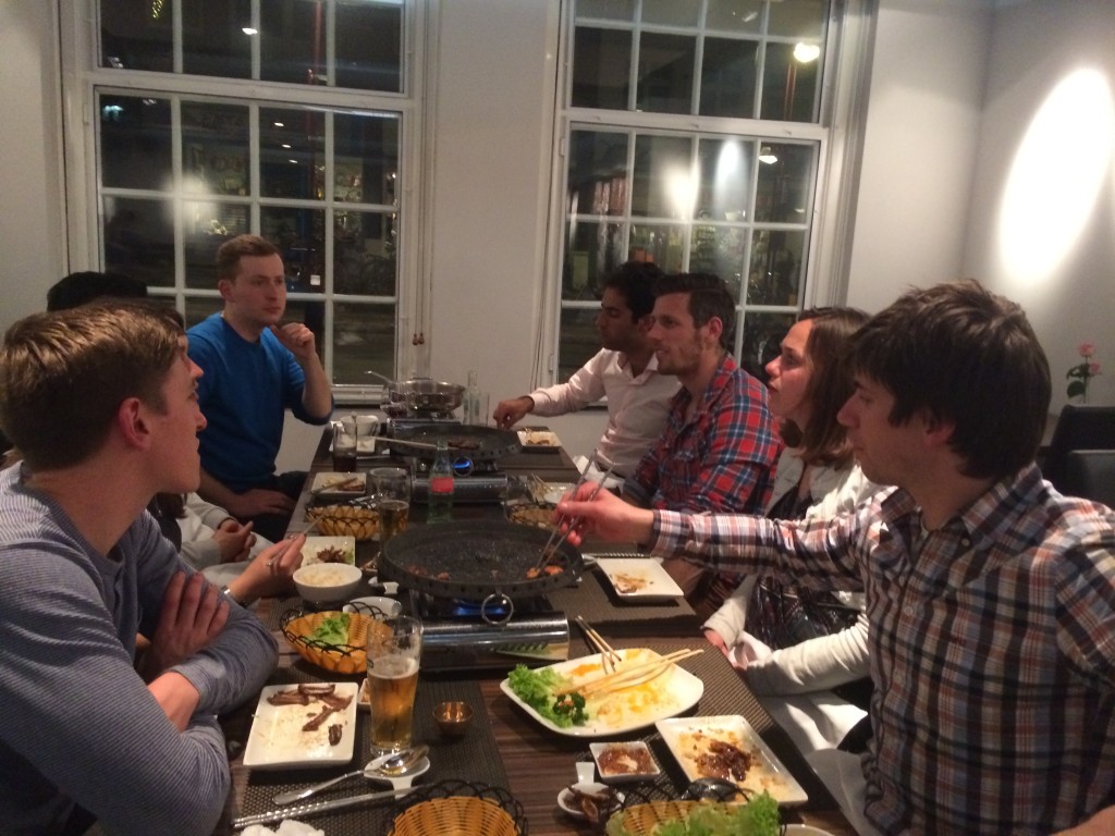 The main dish of Korean cuisine is a barbeque, you get lots of small vegetable-based side dishes (including kim-chi, ofcourse), lots of meat (mostly pork) and you grill it yourself on a barbeque that’s built-in the table. It’s fun cause it’s interactive and with a group of people it’s just really cosy.