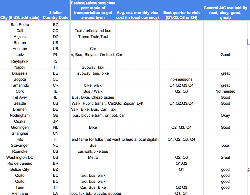 It quickly filled up and with Twitter going crazy about just a spreadsheet list, I had just answered the hypothesis if there’d be interest for this. There was some proprietary data people put on there which I deleted (like Numbeo) and made sure it was all crowd sourced public (and open) data.