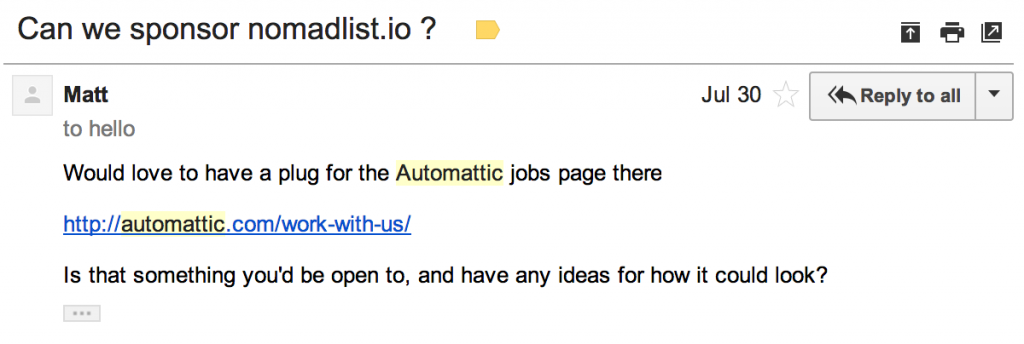 In the first 24 hours of launch, I got an email from Matt from Automattic:
