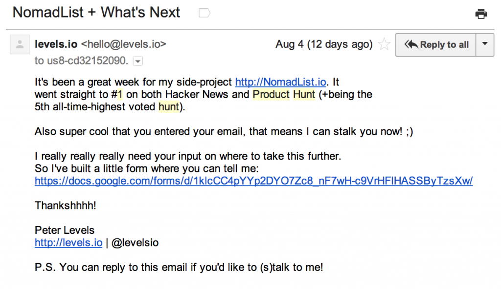 Except for those two, what else could I do to monetize this in the long-term? Ben told me to ask the users directly. So I emailed 2,000 people on the list: