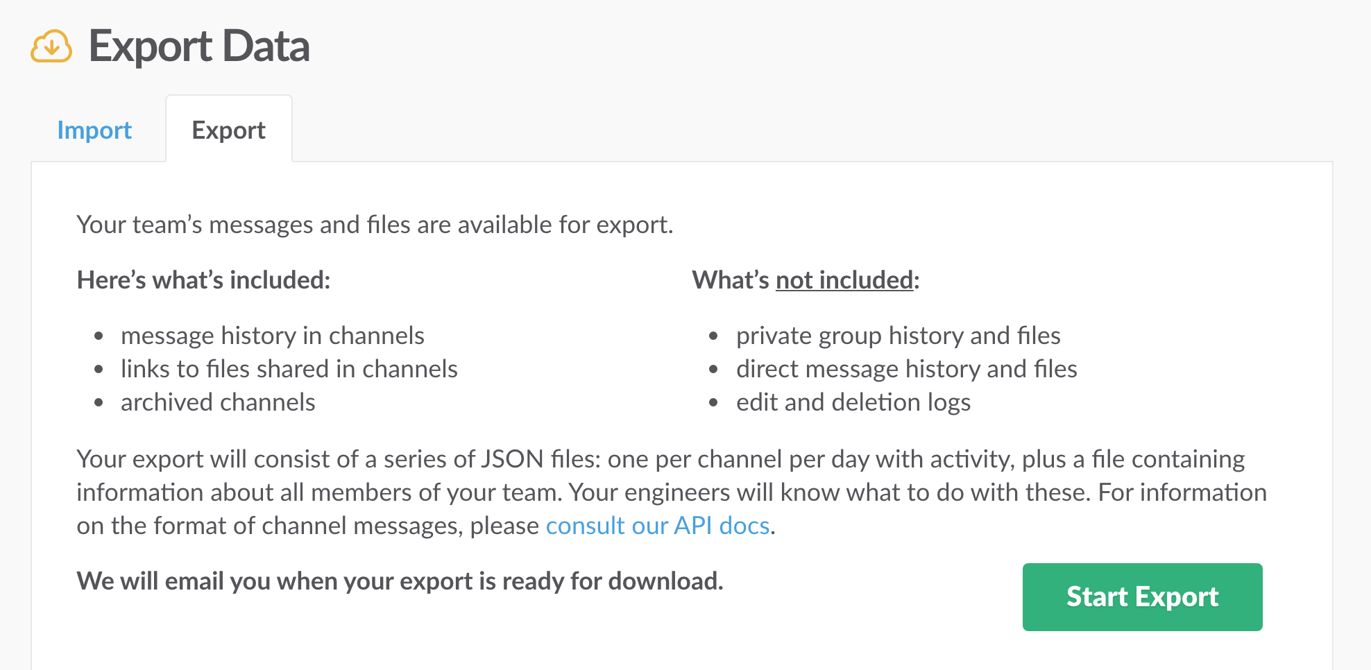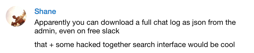 So Slack actually had an export function, which free users can use too. Awesome! Slack had this for ages, I just never saw it myself.