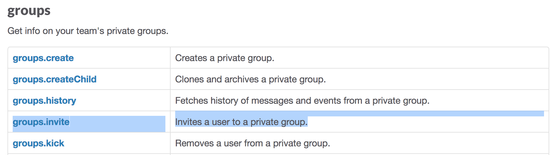 There’s channels.invite and groups.invite, but we need a team.invite method. It’s not there.