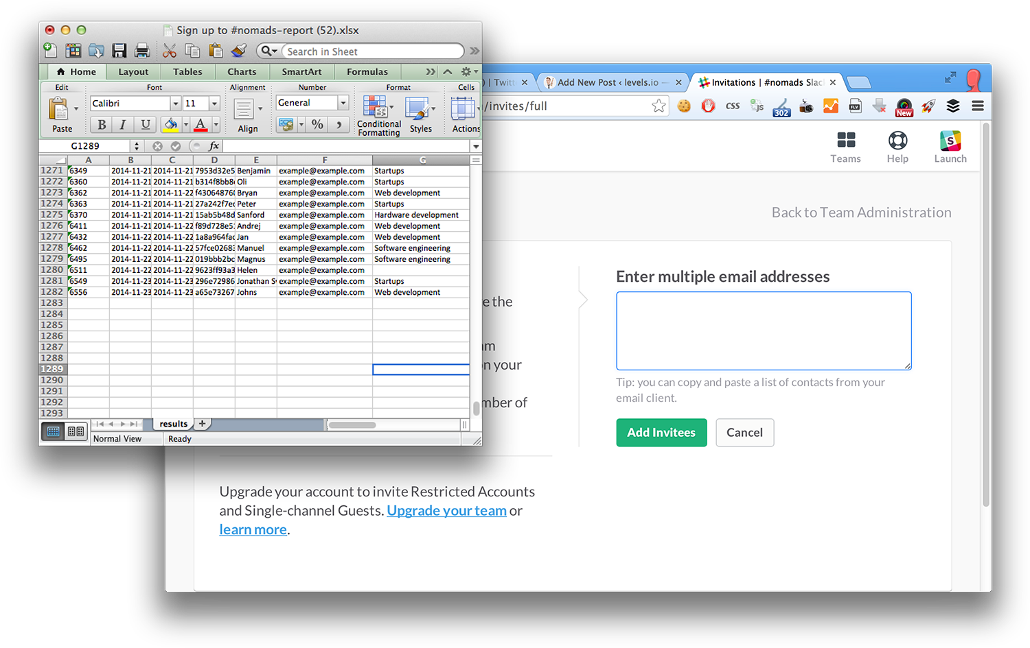 Until now every day I had to go sign in to Typeform, download all the sign ups and then go to Slack and copy-paste them into the invites box:
