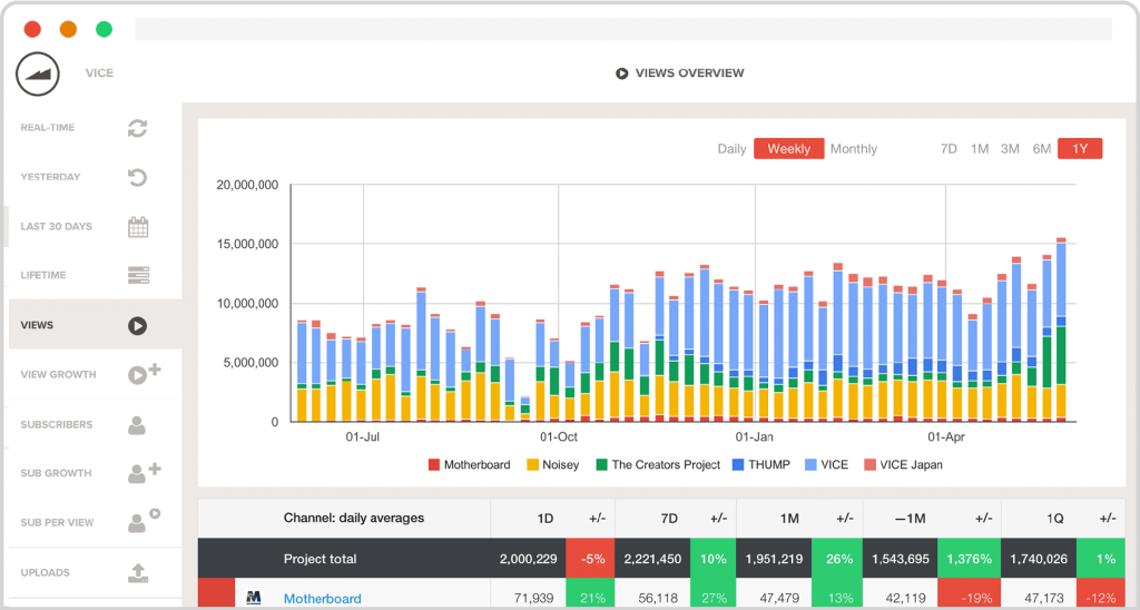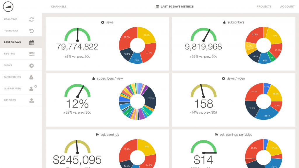 But it’s a lot of YouTube channels. The problem is, it’s always been difficult for me to track all my channels together. YouTube offers their own analytics service, but all your channels need to be connected to a single account. Many companies simply don’t have that control over all their YouTube channels. So, you’d have to sign in and out of each channel to check its stats. That quickly becomes a pain. Added to that, it was impossible to see how my channels were performing vs. competing channels.