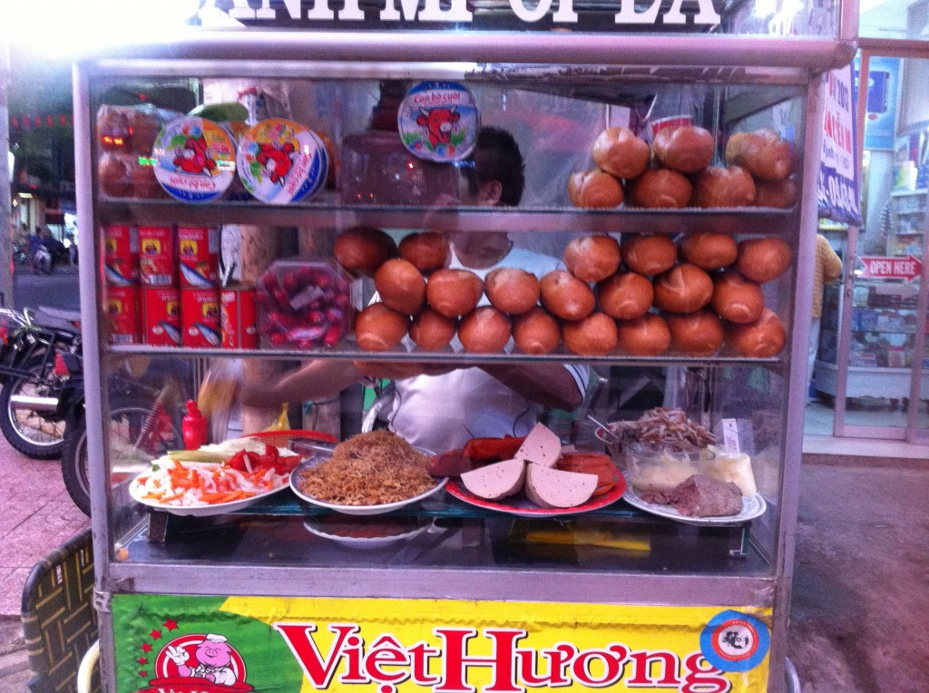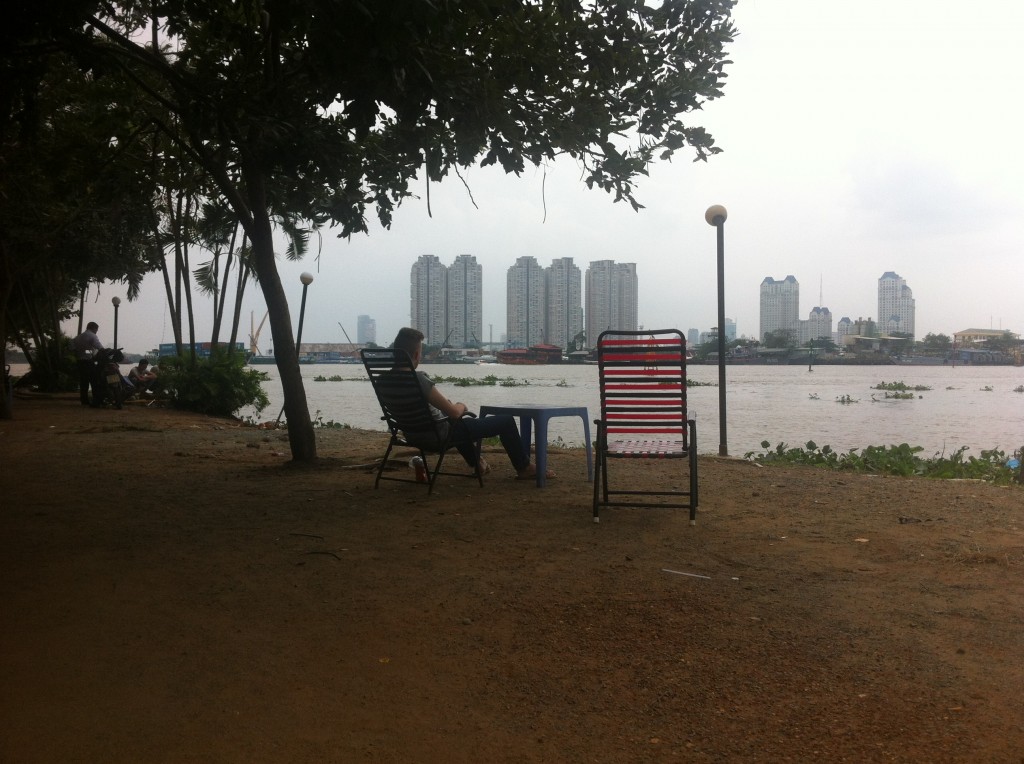 Now, I was staying in Ho Chi Minh’s District 1. It’s like the tourist traps of San Francisco’s Fisherman’s Wharf, London’s Leicester Square or Amsterdam’s Dam Square. Tourist-traps usually have nothing to do with the city they’re in and the service there is mostly terrible. I figured that might be the deal with Ho Chi Minh’s District 1. So trying to escape the trap, I ventured into District 2 and 3. But even there I kept running into trouble. I’d pass street cleaners with big brooms, who’d literally broom the dirt straight over my feet. The street-food vendors would do the same and throw their buckets of dirty dish water over my legs. What the actual fuck. There seemed to be either some foreigner-hatred here or a total disregard for other people. To keep it positive, I assumed the latter. I looked it in the mirror to make sure I wasn’t wearing an American flag on my head.
