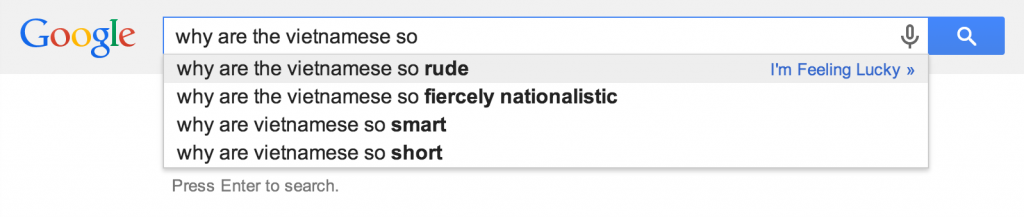 I talked to other travelers about it and everyone seemed to have the same experience. They liked the country, but liking the people was difficult. Even the Chinese travelers agreed! And the first hit for Google autocomplete for Vietnamese was “rude”. A famous travel blogger expressed his sincere thoughts entitled “Why I’ll never return to Vietnam”: