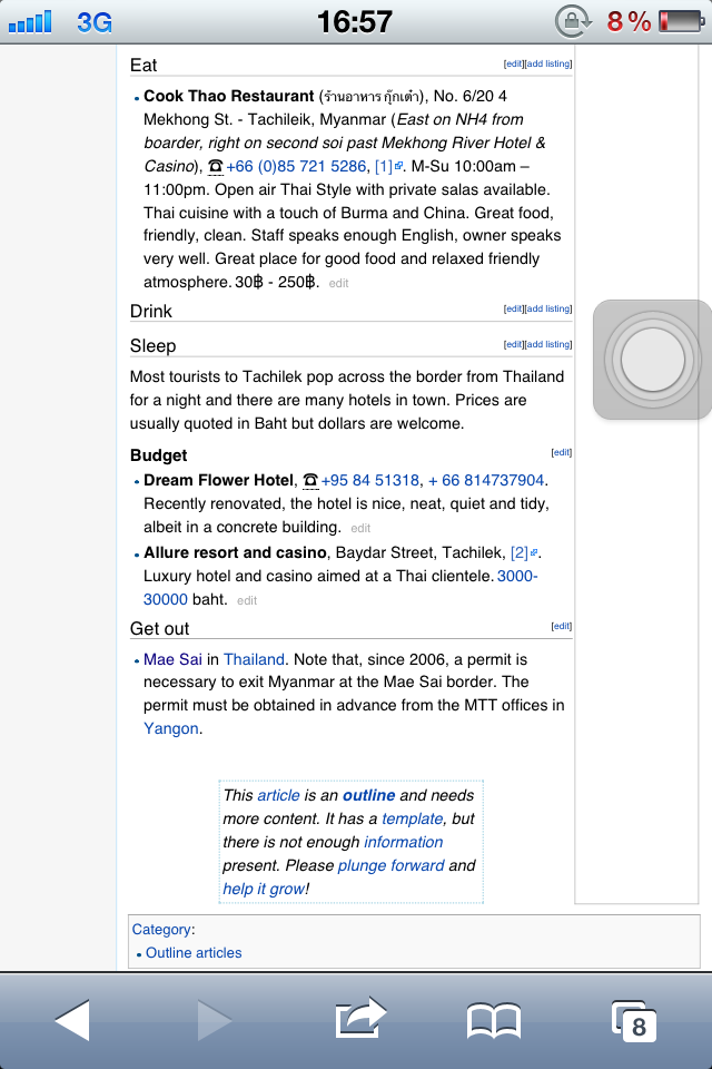 I kept walking but there wasn’t even any hotels I could see. I had a backup in case I wouldn’t find a place to stay, which was a screenshot of WikiTravel’s Tachileik page: