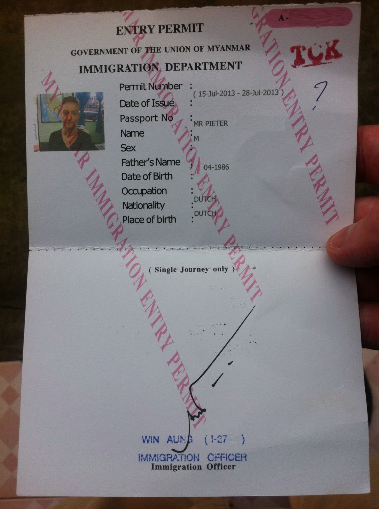 The border crossing was quite special. I walked to the crossing, the Thai stamped my passport and I walked towards the Burmese side. Suddenly there was a guy following me. Since I’m paranoid as fuck, I stopped walking and he took me over and introduced himself. Since I wasn’t really in for chit-chat, and I was about to enter Myanmar, I told him I wasn’t interested. But he was interested.